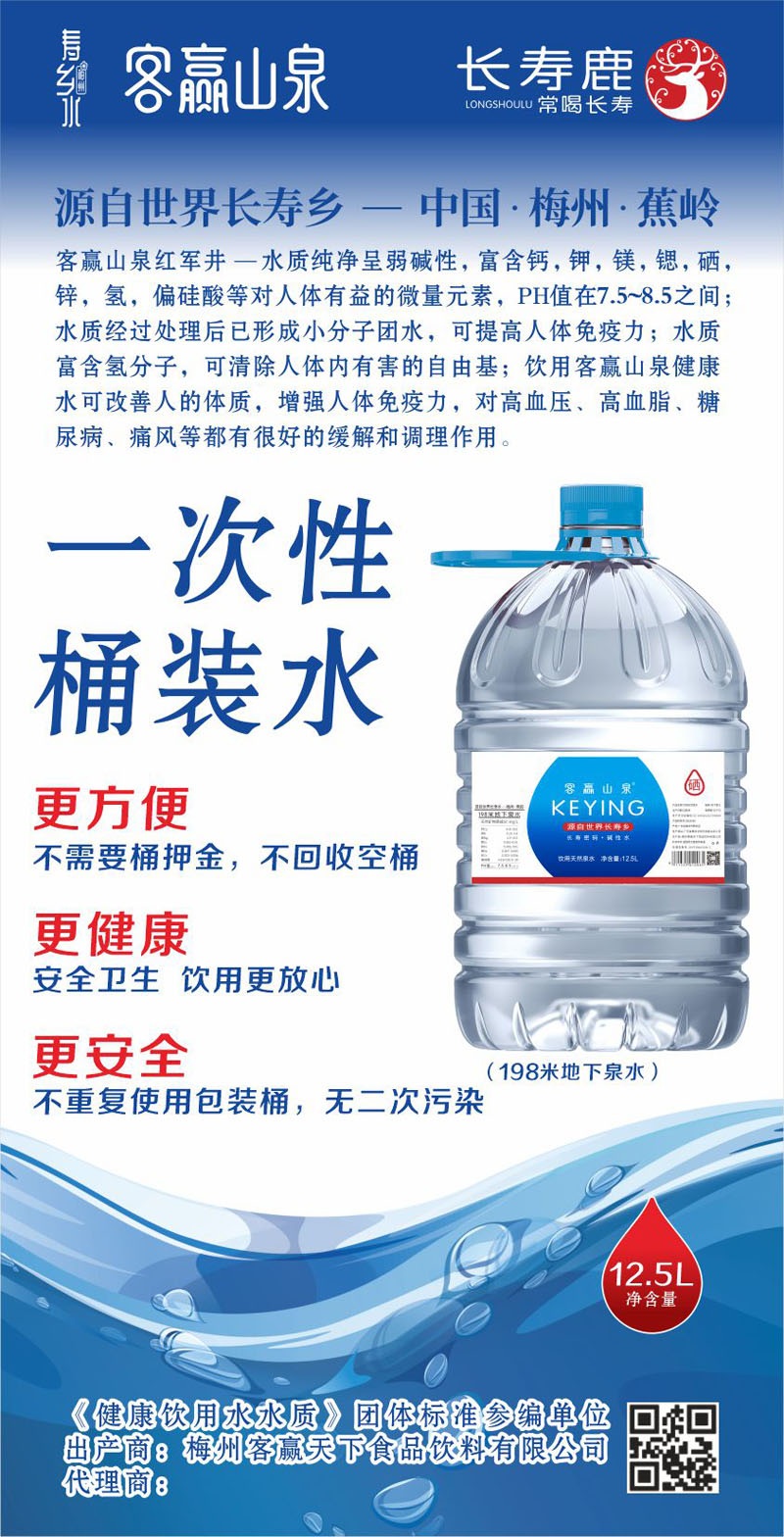 梅州客贏天下長壽水業(yè)有限公司是一家生產(chǎn)弱堿性天然飲用水的企業(yè),位于第七個世界長壽鄉(xiāng)--蕉嶺華僑農(nóng)場北坑村五馬山,水源天然純凈含多種礦物質(zhì)微量元素,是健康的好水。現(xiàn)為珠海各機(jī)關(guān)單位、協(xié)會、商會、企業(yè)單位舉辦高端會議及活動送上一份真誠的祝福和溫馨的問候。