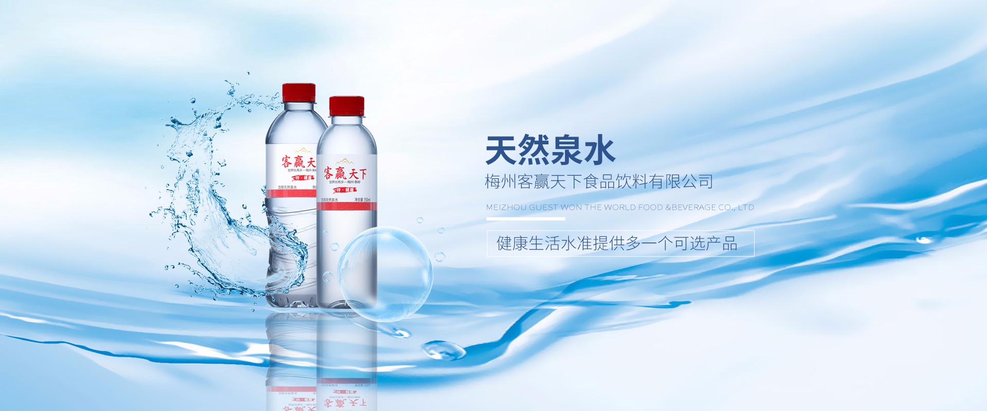 梅州客贏天下食品飲料有限公司是廣東客贏天下實(shí)業(yè)有限公司的直屬企業(yè),公司坐落于美麗的城市——梅州,蕉嶺縣,公司主要從事“客贏山泉”品牌系列富鋅.硒水、茶飲料的生產(chǎn)、包裝和銷售,產(chǎn)品規(guī)格有365ml、350ml,500ml,瓶裝水12.5L桶裝水等。產(chǎn)品源自世界長壽之鄉(xiāng):中國●蕉嶺,生態(tài)嚴(yán)控保護(hù)區(qū)水資源。我們堅持"天然、健康"的產(chǎn)品理念。不使用地表水生產(chǎn)瓶裝飲用水,不在飲用水中添加任何人工礦物質(zhì)。我們保證水源地灌裝,確保產(chǎn)品的生產(chǎn)過程都在水源地完成,確保所有”客贏山泉”都是天然泉水。以人類健康為己任,讓更多的人能喝上天然優(yōu)質(zhì)健康的好水為目標(biāo)。